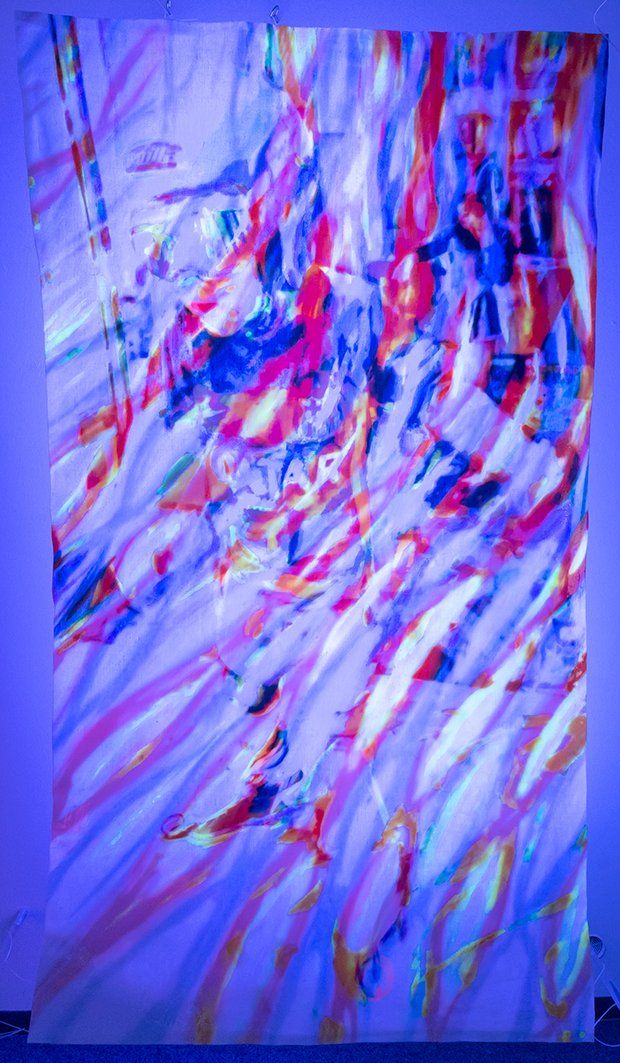 Titel: LightAndRoomSkatingKarl, 06/2021, Unikat, 180 x 100 x 20 cm, Lichtskulptur mit einstellbarer LED-Beleuchtung