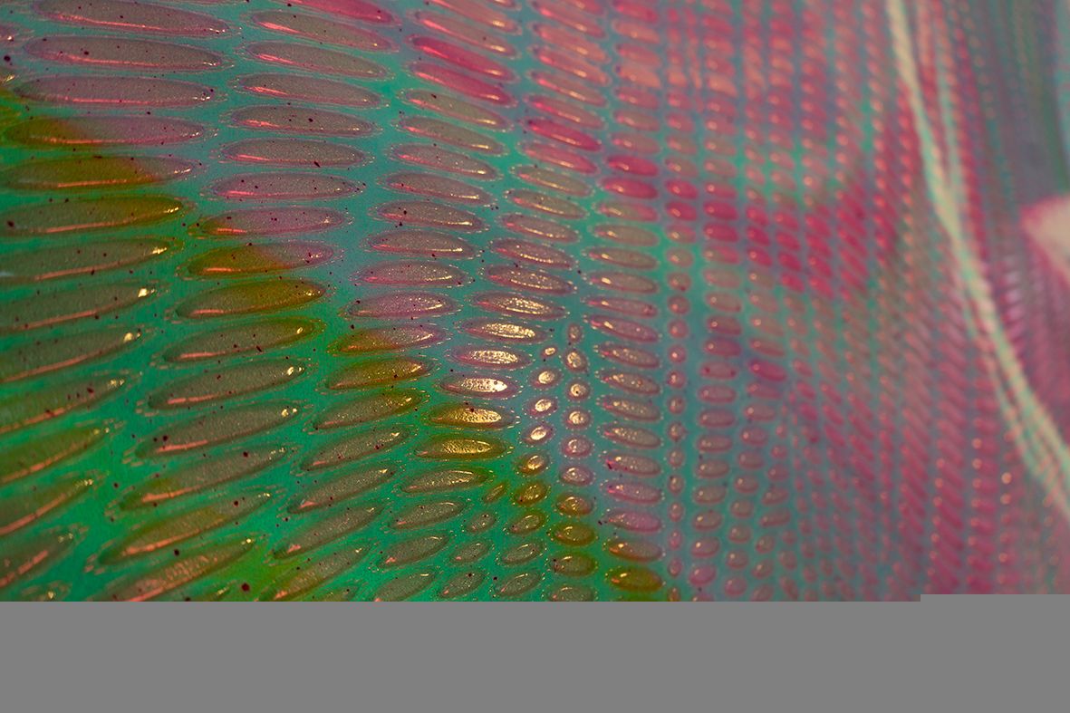 These works of art are not just for looking at. They can and should be touched and felt. They have 3D surfaces with reliefs that give the works additional dimensions depending on the viewing angle. If you take a closer look, you can see countless microstructures in the macrostructure. The 3D color space used literally breaks all conventions. The sophisticated technologies used enable the use of a wide variety of colors, including metallic ones. This creates an unprecedented richness of colour. A symbiosis of thousands of colors and matt-gloss structures with incredible depth is achieved.