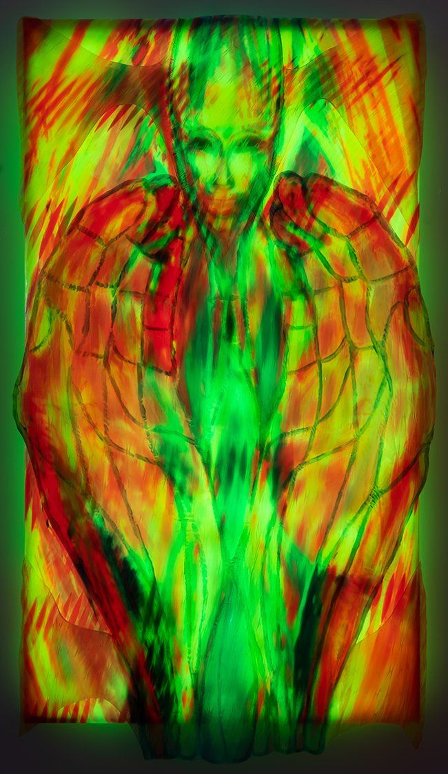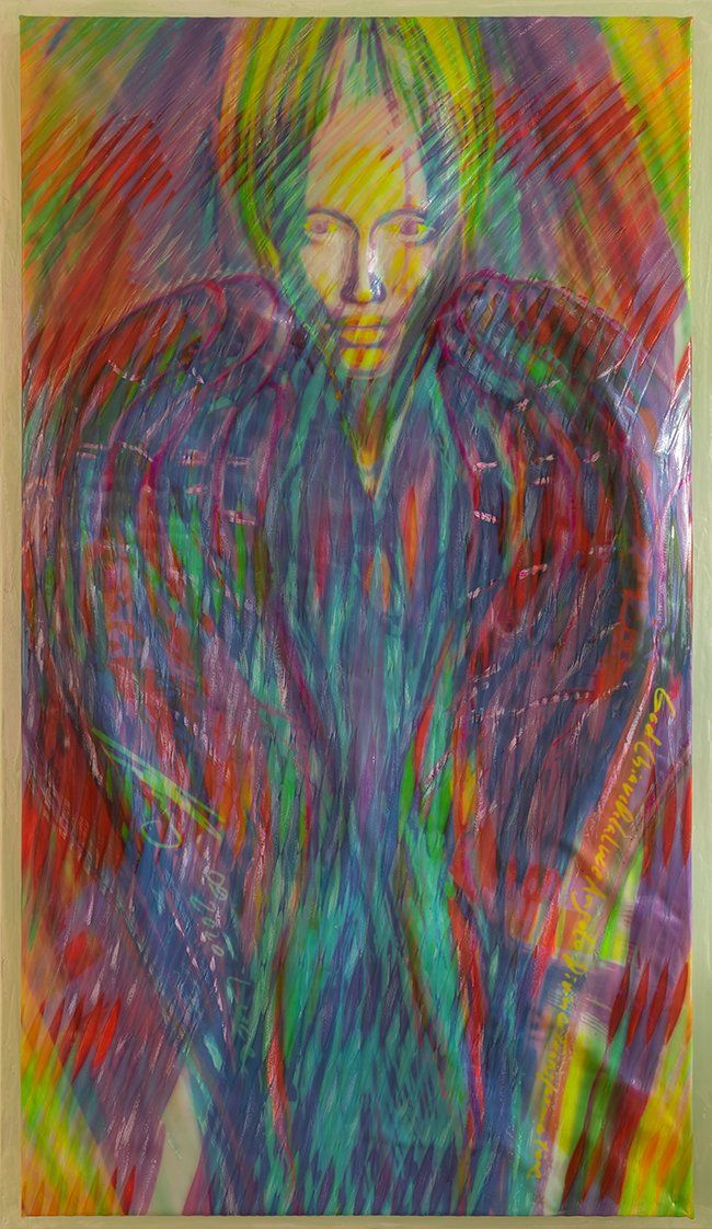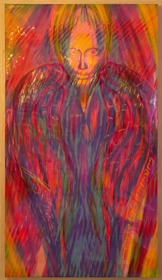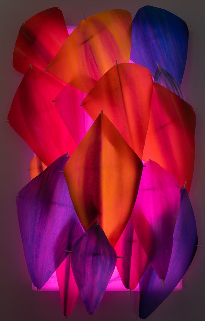 Titel: AngeloPrimuroso, 08/2021, Unikat, 180 x 100 x 40 cm, LichtWandSkulptur mit wechselbarer LED-Beleuchtung