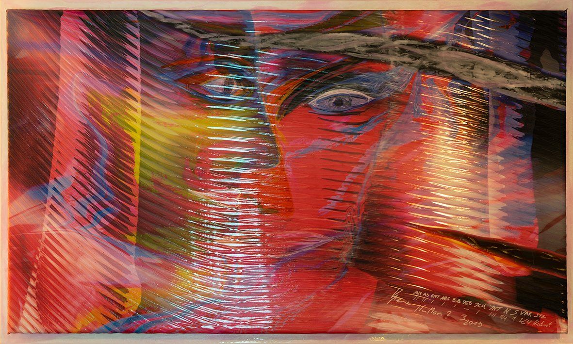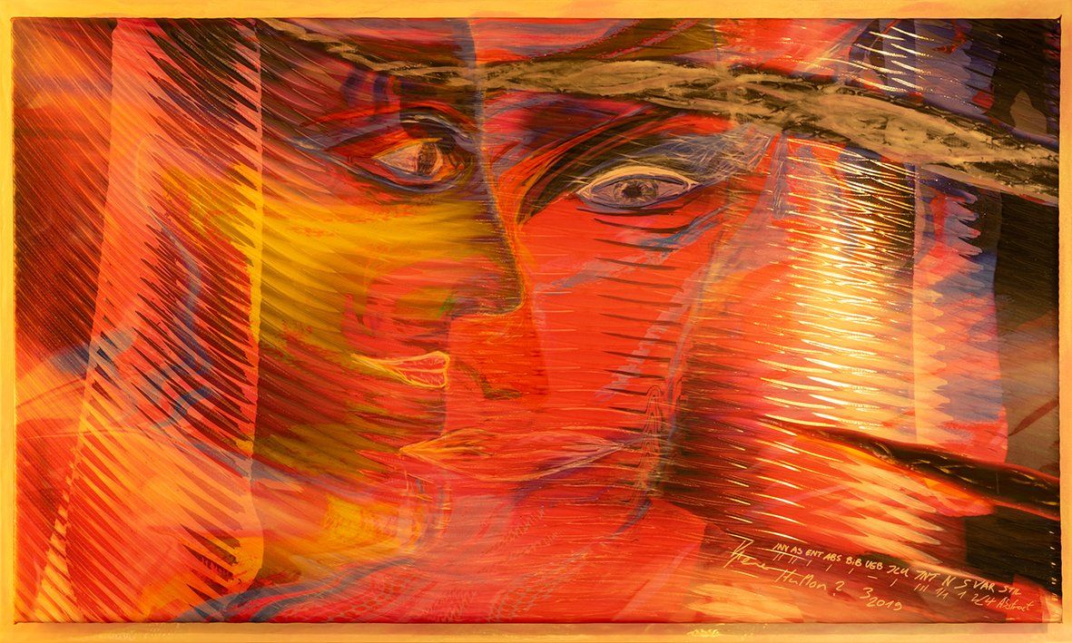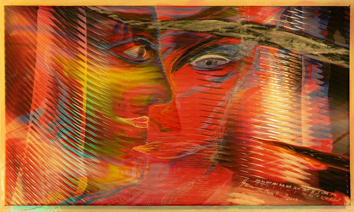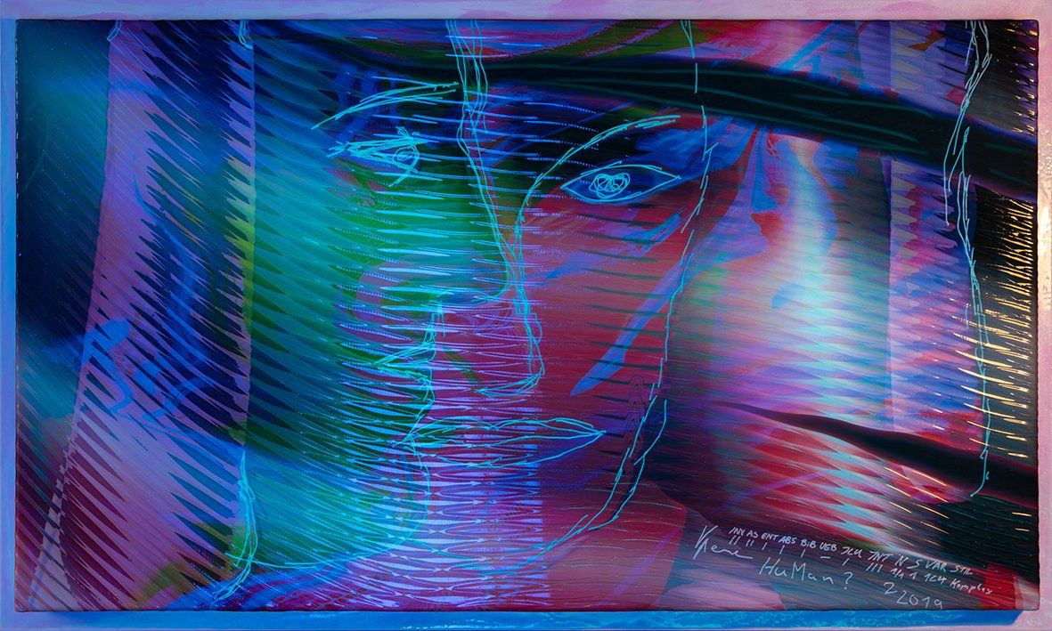 Titel: HuMan? V3 < 4, 03/2019, Unikat, 180 x 110 x 10 cm, LichtWandSkulptur mit einstellbarer LED-Beleuchtung