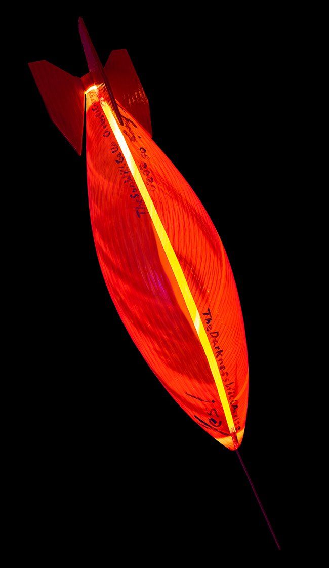 Titel: FloweralBomb482g V1, 12/2019, Unikat, 91 x 91 x 30 cm (ohne Rahmen), LichtSkulptur mit einstellbarer LED-Beleuchtung und UV-Pigmenten