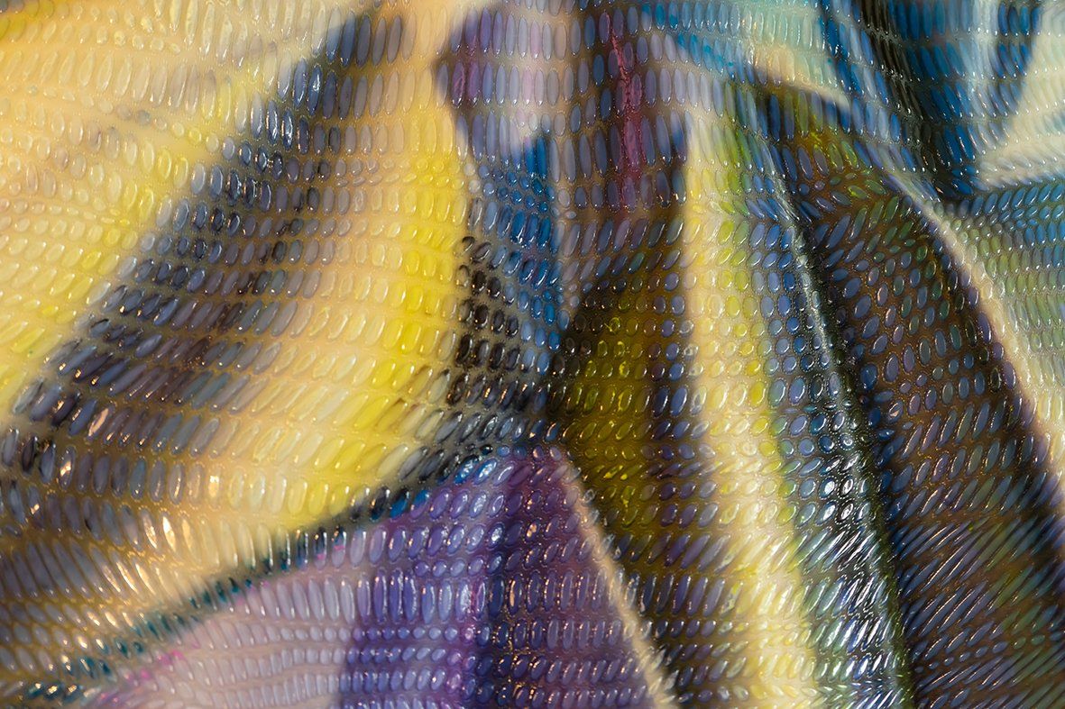 Self-developed polymers for the translucent surfaces, paints and varnishes, pigments, organic cotton, polycarbonate, wood and LEDs