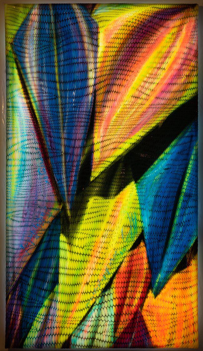 Vom Künstler selbst entwickelte Polymere für die transluzenten Oberflächen, Farben und Lacke