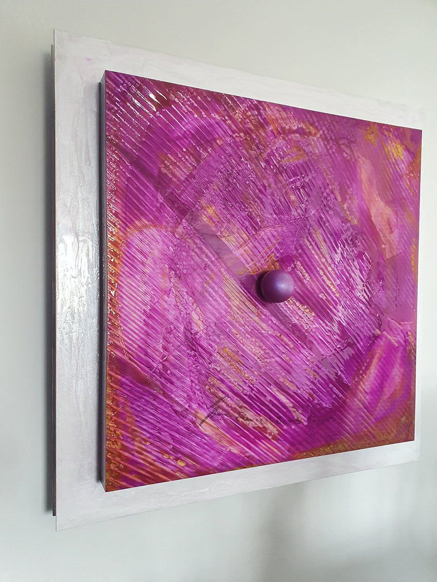 Titel: FloweralBomb482g V2, 12/2019, Unikat, 91 x 91 x 30 cm (ohne Rahmen), LichtSkulptur mit einstellbarer LED-Beleuchtung und UV-Pigmenten