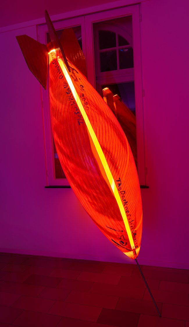 Titel: TheGoldenSun, 05/2020, Unikat, 260 x 60 x 60 cm, LichtSkulptur mit einstellbarer LED-Beleuchtung
