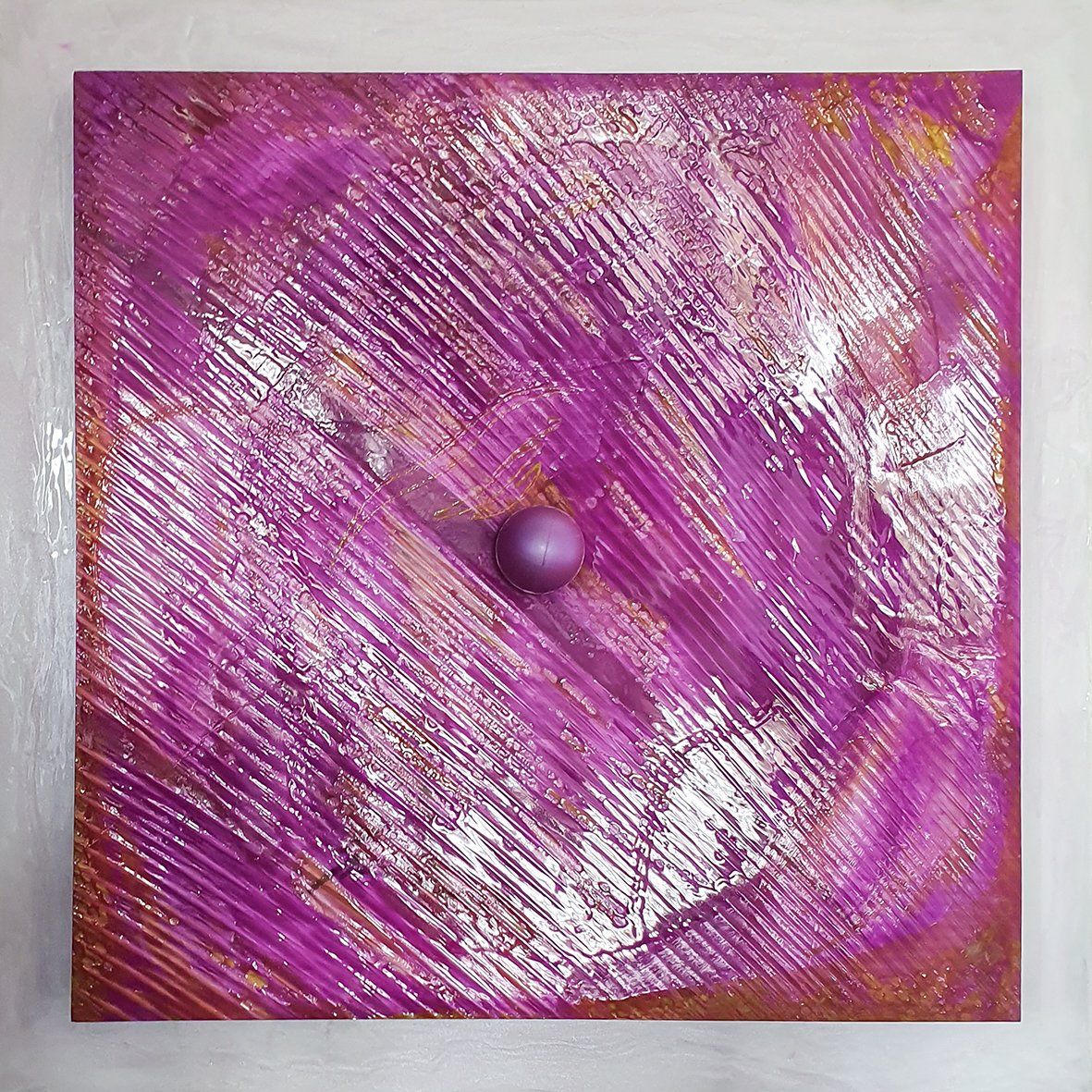 Titel: FloweralBomb482g V2, 12/2019, Unikat, 91 x 91 x 30 cm (ohne Rahmen), LichtSkulptur mit einstellbarer LED-Beleuchtung und UV-Pigmenten