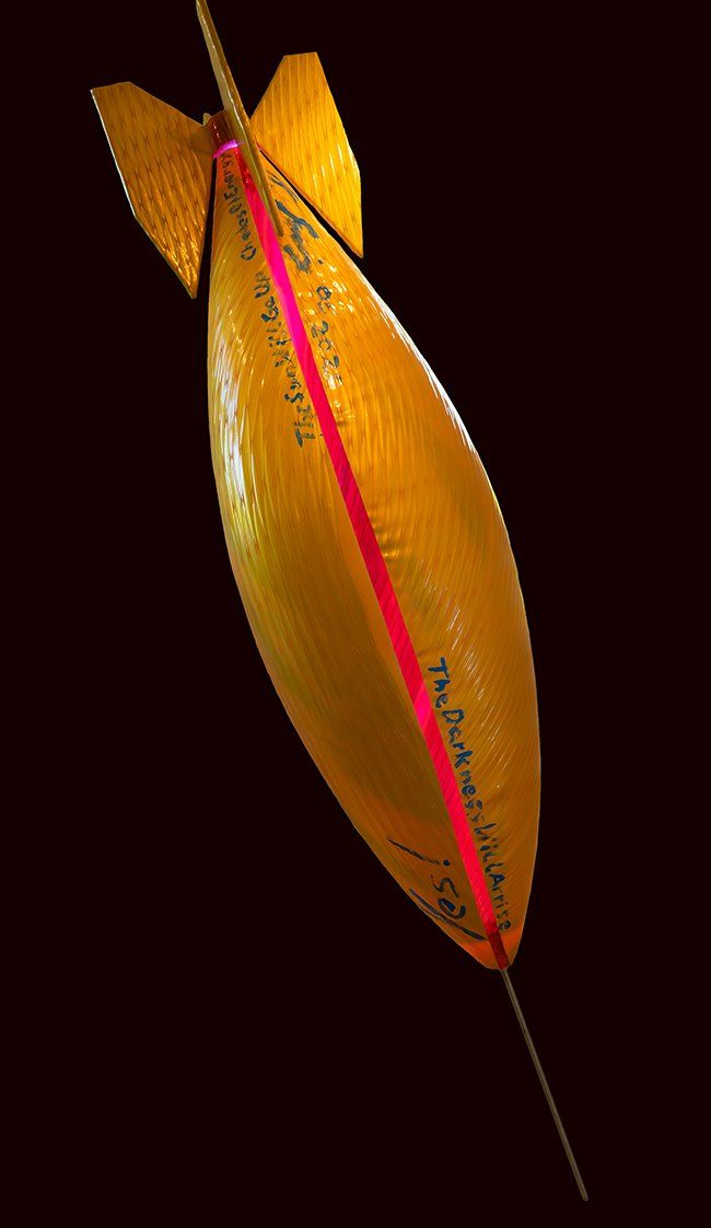Eine als Skulptur dargestellte Atombombe oder Geistesbombe, die aus zwei Schalen besteht. Die eine Schale symbolisiert die Befürworter der Atombombe, die andere die der Gegner der Atombombe. Die Schalen sind deformiert. Die Deformation oder das in sich zusammenfallen symbolisieren die politische Entspannung nach dem kalten Krieg. Energie: Schön, ästhetisch und elendig, zerstörerisch. Eine Frage der Nutzung. ...