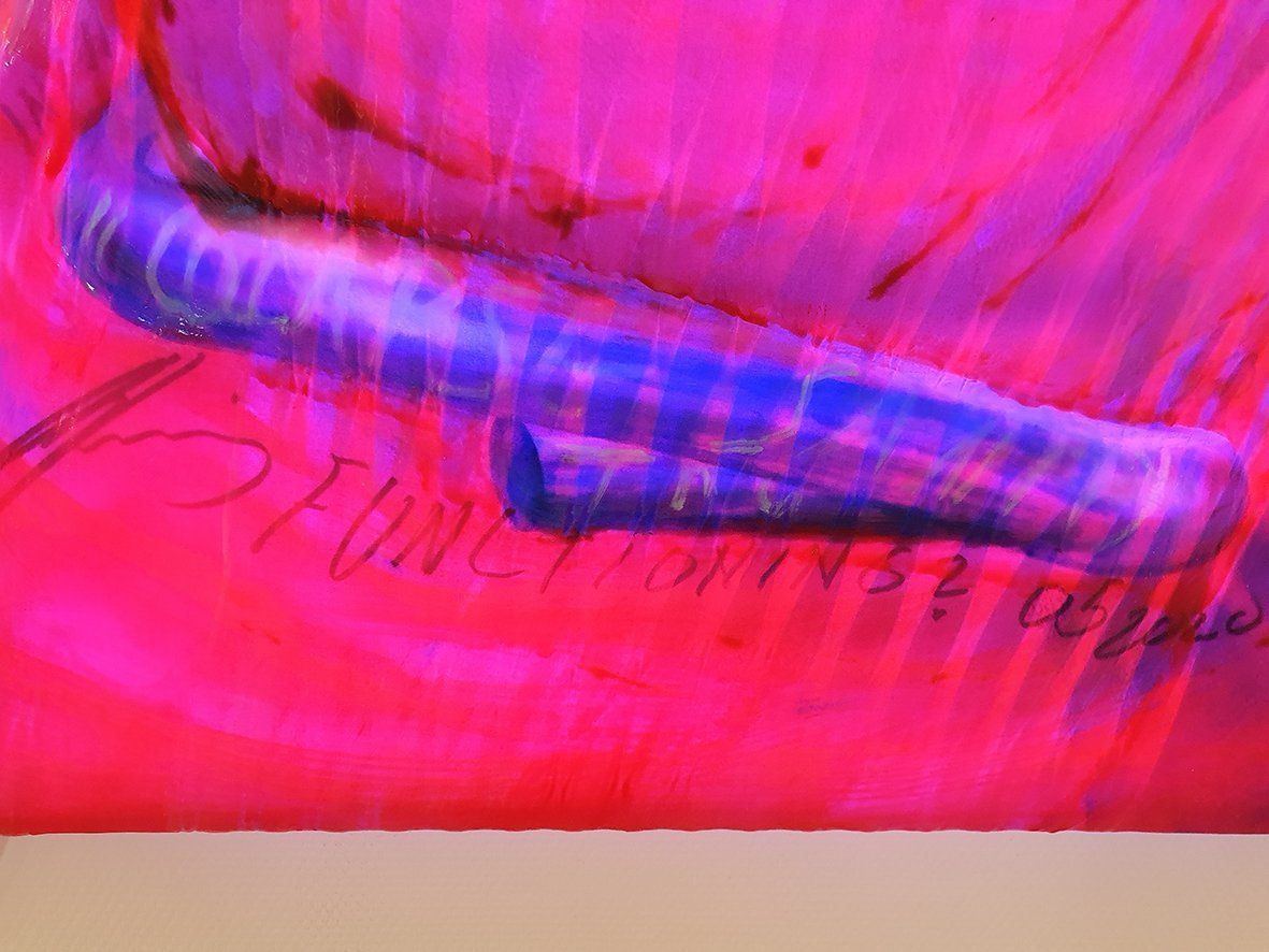 Titel: Functioning?, 05/2020, Unikat, 91 x 91 x 30 cm, LichtSkulptur mit einstellbarer LED-Beleuchtung / UV-Pigmente