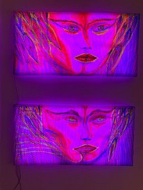 Titel: Chamelion, 04/2020, Unikat, 91 x 91 x 11 cm, LichtSkulptur mit einstellbarer LED-Beleuchtung und UV-Pigmenten