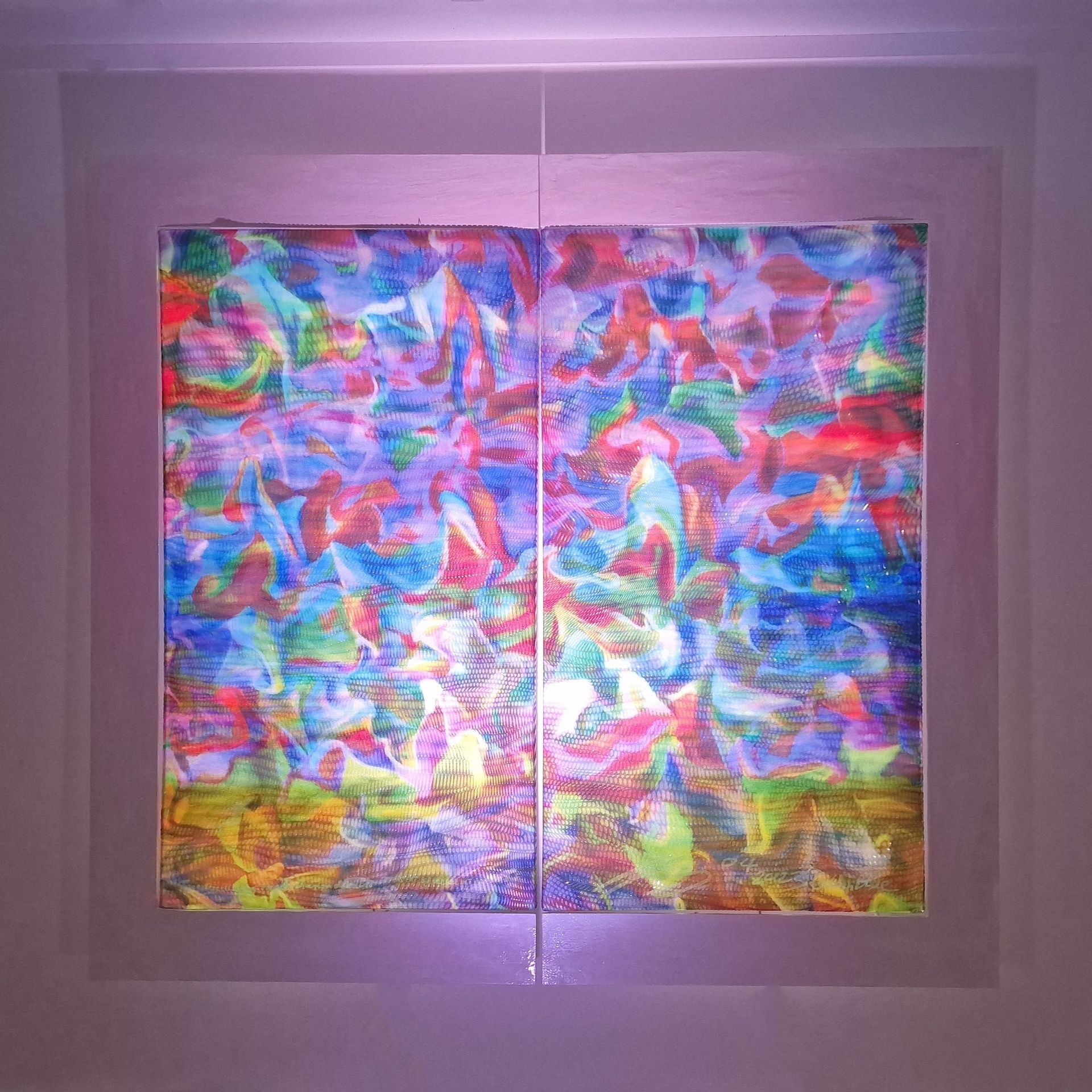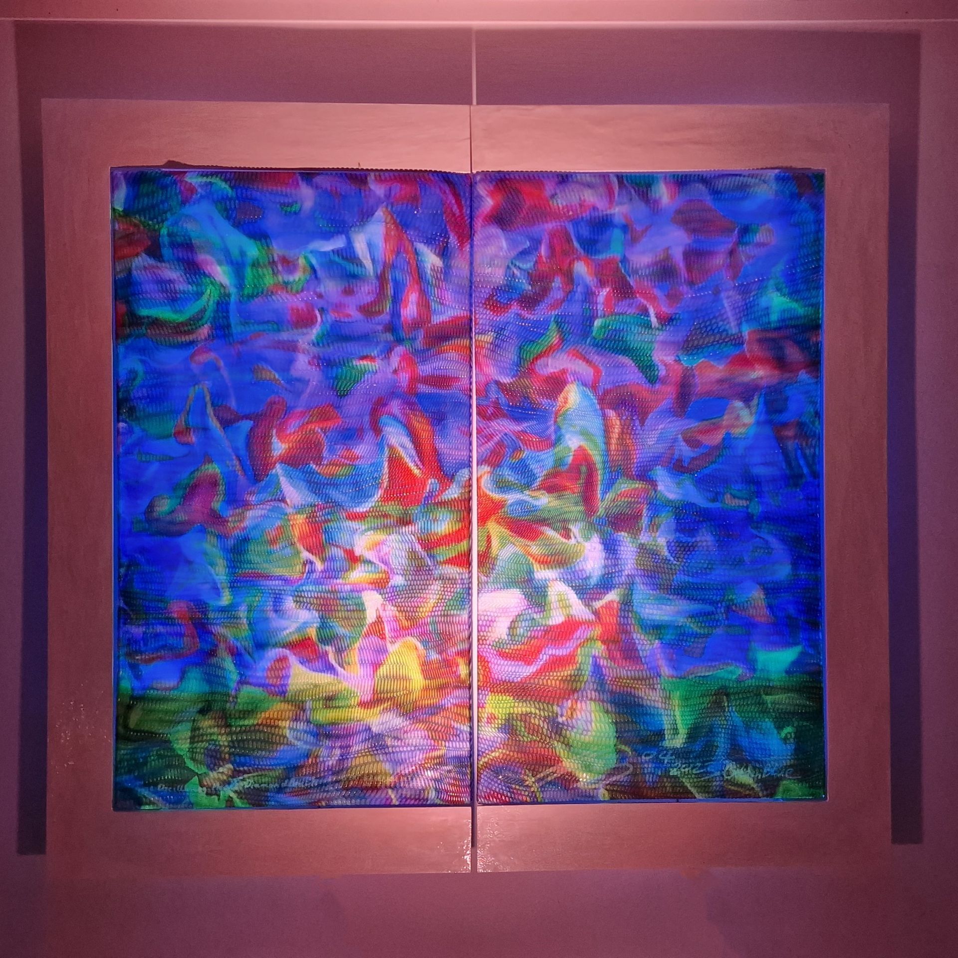 Kunstwerk mit LEDs aus / Leds an / Leds an plus UV Spot