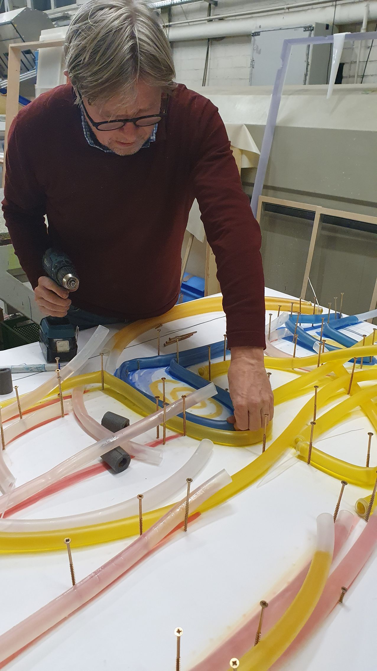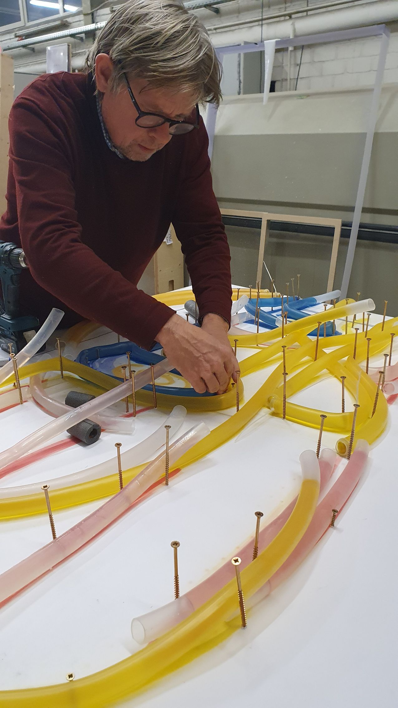 "Meine Kunstwerke brauchen unterschiedliche Technologien in ihrem Entstehungsprozess, über die verschiedensten Entwicklungen von Materialien bis hin zu unterschiedlichsten Form- und Farbgebungstechnologien - um nur einige zu nennen. In meinen Baukästen befinden sich somit viele und unterschiedlichste Materialkompositionen. Starre Materialien, elastische Materialien, formbare Materialien, transluzente Materialien, Farben, etc. In meinen Werkzeugkästen befinden sich die Werkzeuge als auch Technologien zur Komposition und Gestaltung der einzelnen Elemente meiner Baukästen. Hydroformung, Urformung, Umformung, Laserstrukturierung, …"